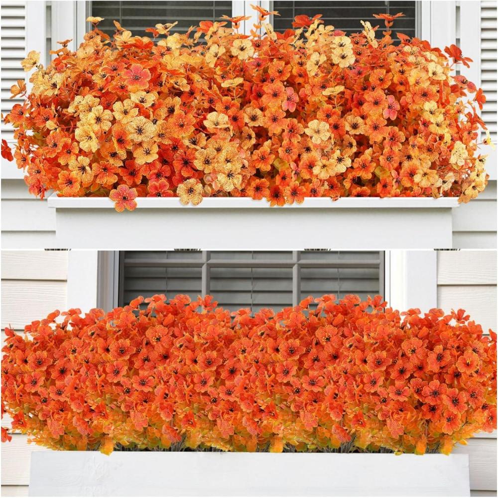 AmyHomie 32 Bundles Artificial Fall Flowers for Outdoors