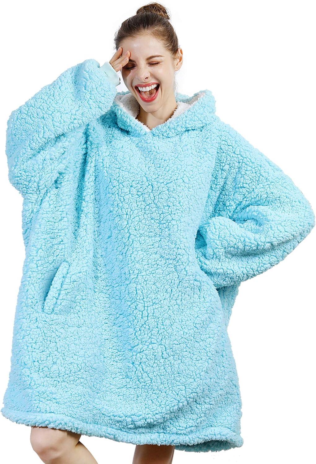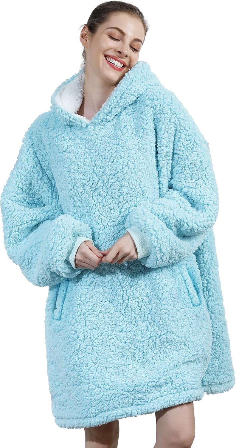 AmyHomie Blanket Sweatshirt,Oversized Sherpa Hooded Blanket Hoodie,Fleecehug Hoodie Wearable Blanket for Women Men Kids(Sherpa Teal)