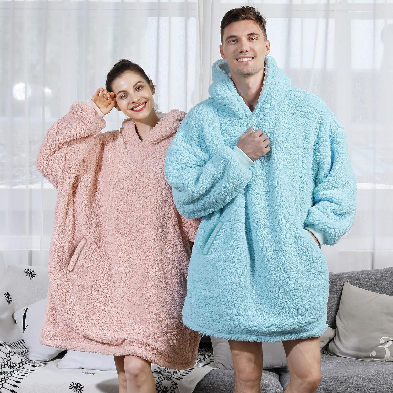 AmyHomie Blanket Sweatshirt,Oversized Sherpa Hooded Blanket Hoodie,Fleecehug Hoodie Wearable Blanket for Women Men Kids(Sherpa Light Pink)