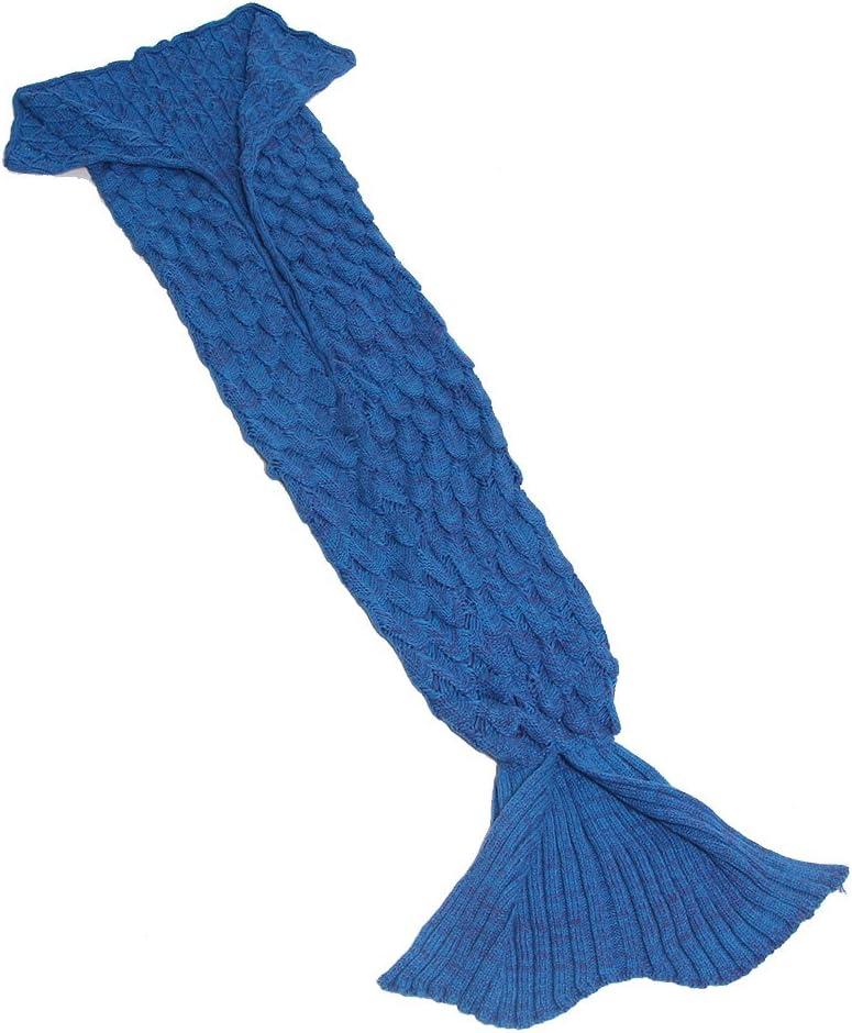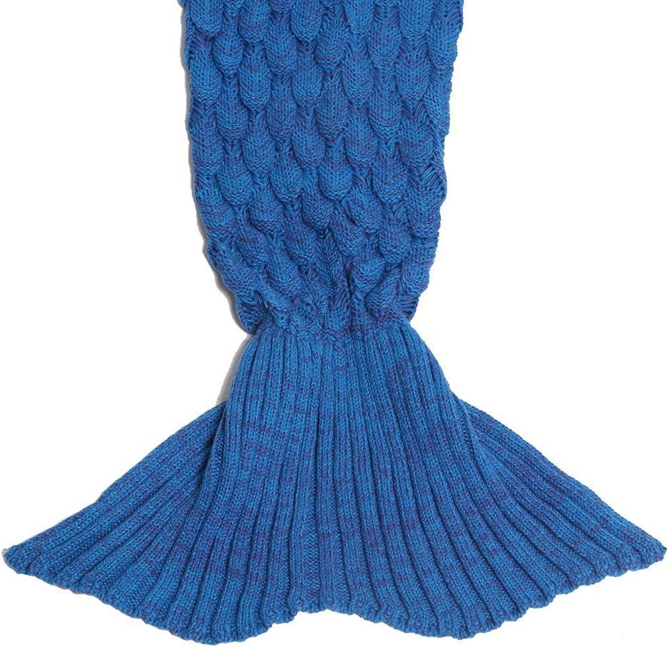 AmyHomie Mermaid Tail Blanket, Kids Soft Blanket Crochet Mermaid Sleeping Bag Mermaid Gift for Girls(Fish Scales Purple, Kids)(Scaleblue)