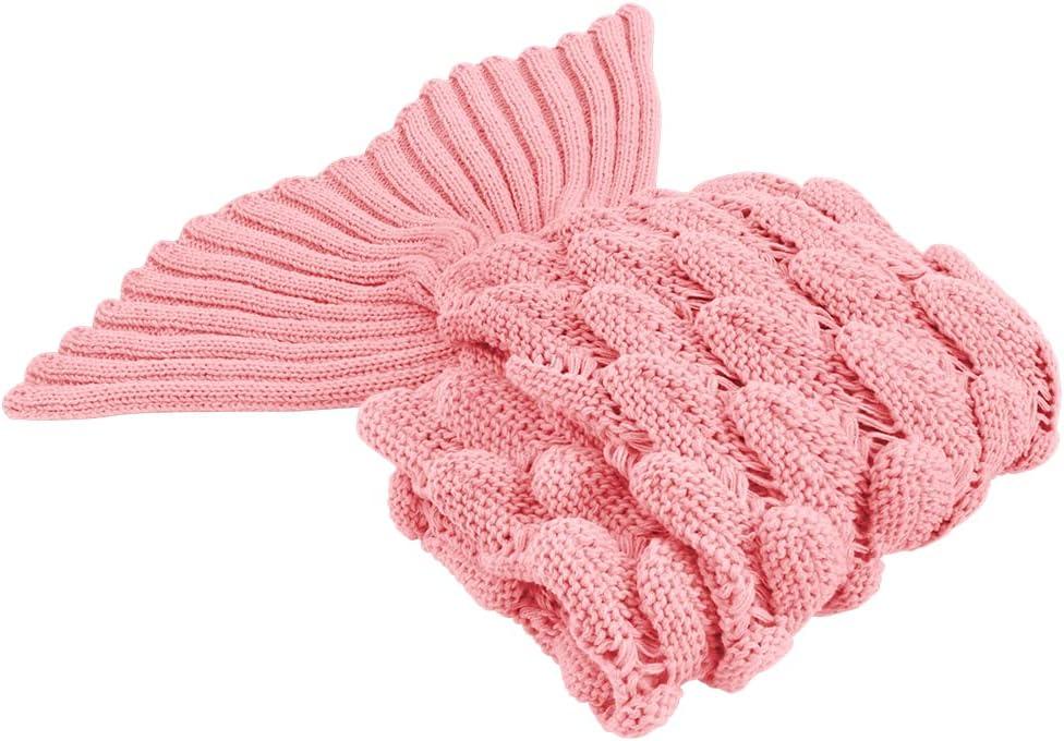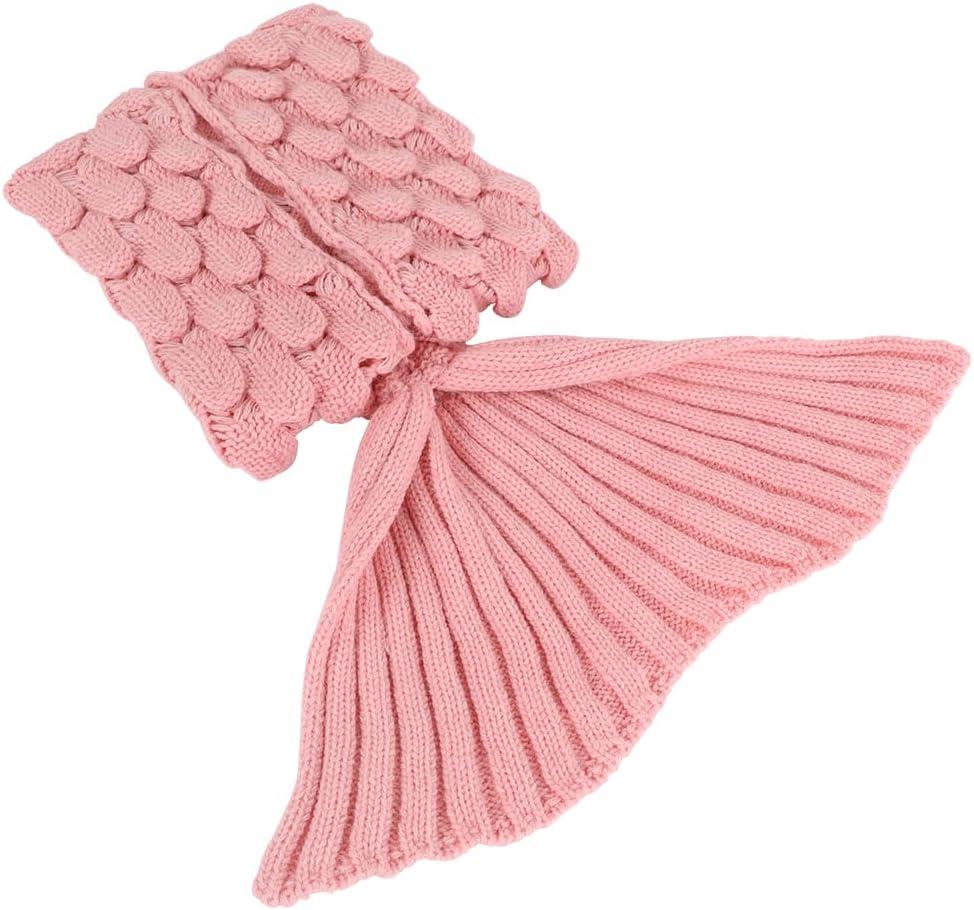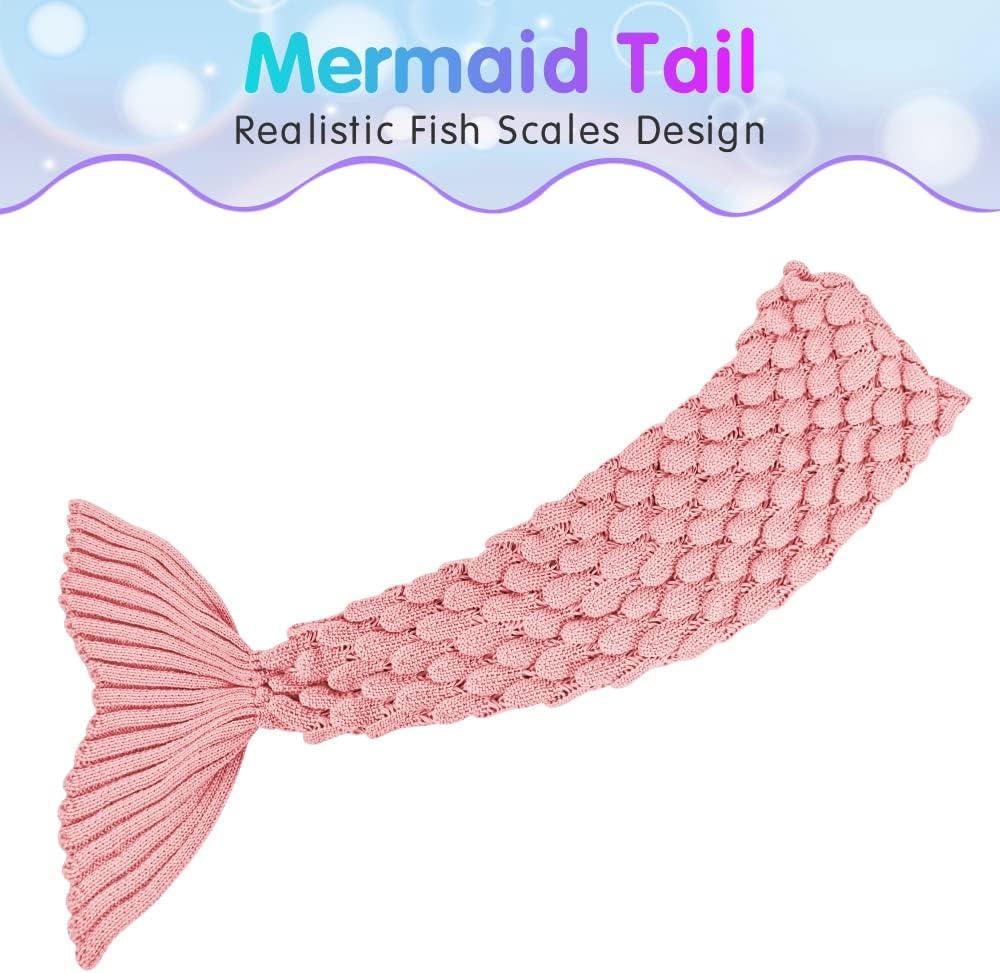 AmyHomie Mermaid Tail Blanket, Soft Crochet Sleeping Bag Blanket for Kids Adults, Mermaid Gift for Girls(Rainbow,Kids)(Light Pink)